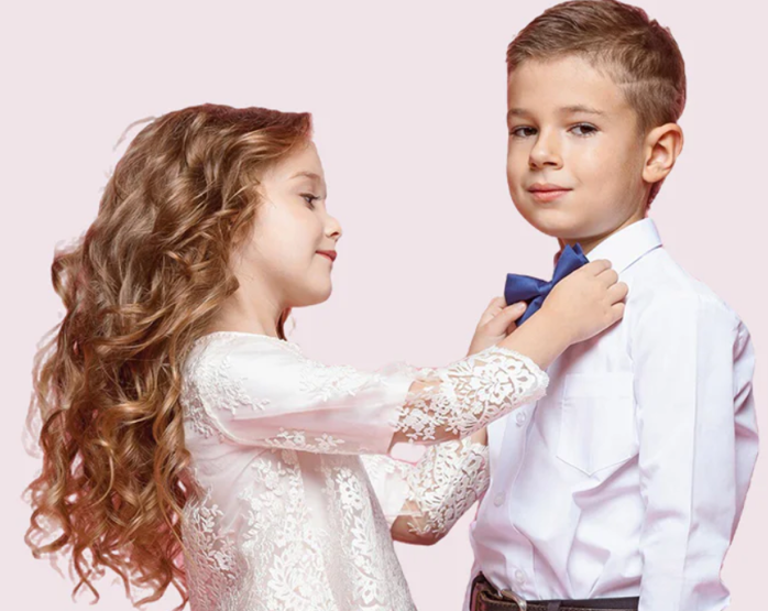 Command elegance with the Regal Noir Majesty suit from EXOMOON – a timeless creation for young boys who deserve to shine in sophistication. Designed in a deep charcoal black hue with a sleek satin-finish shawl lapel, this 5-piece suit brings luxury to every special occasion.